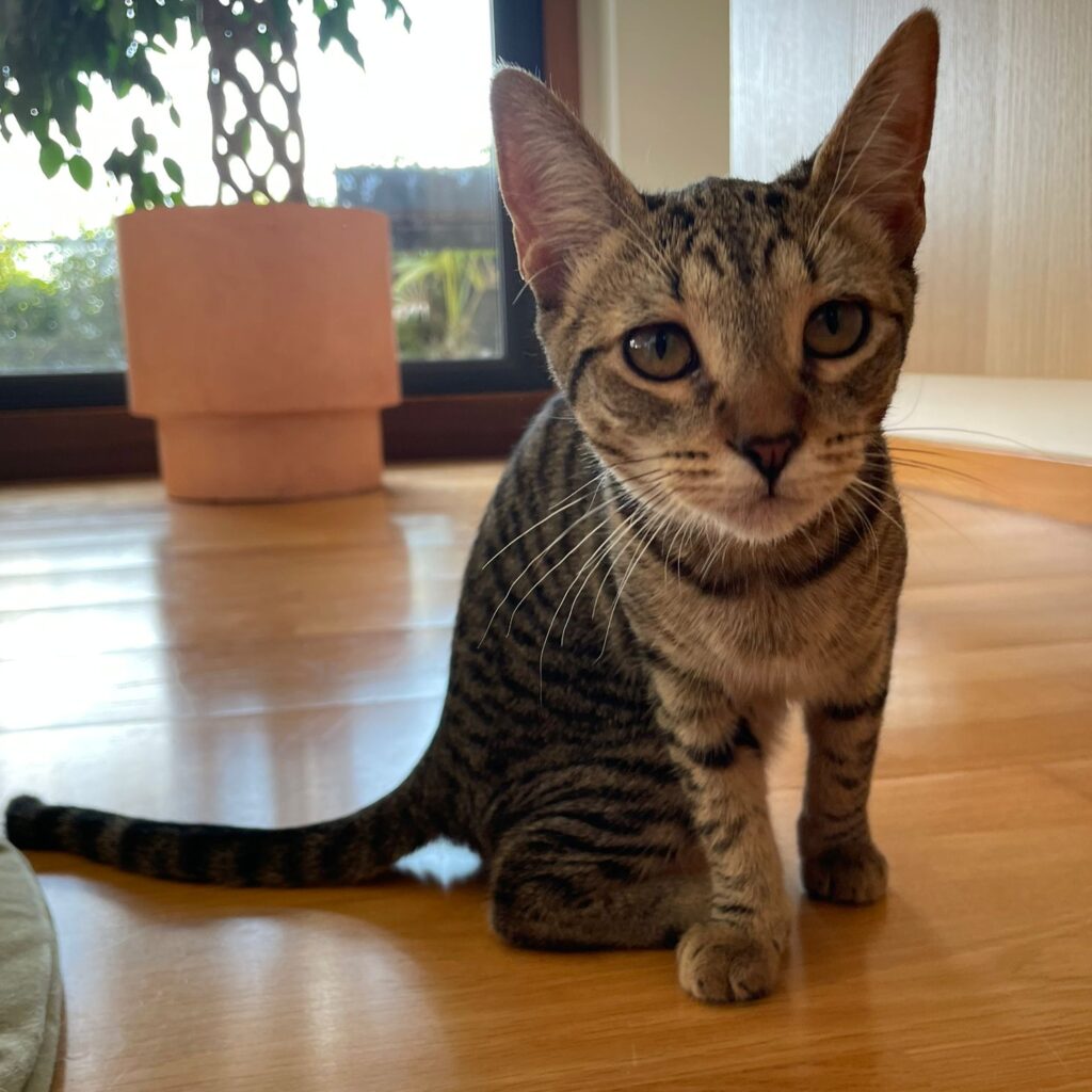 BUFAS llegó con sus hermanos en muy mal estado, con estornudos, secreción, mocos. Poco a poco se recuperaron en su casa de acogida. BUFAS es atlética, fuerte, sabe abrir puertas, cerrojos… pero es muy obediente y cariñosa.