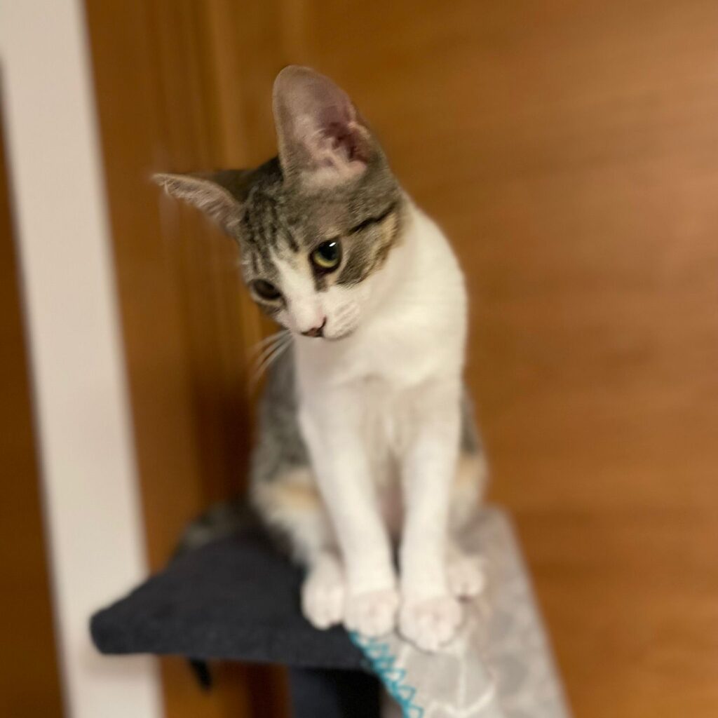 LIVINGSTONE llegó con sus hermanos en muy mal estado, con estornudos, secreción, mocos. Poco a poco se recuperaron en su casa de acogida. LIVINGSTONE aúna dos virtudes, es la más exploradora de la camada, la que abre camino a conocer nuevos lugares pero también es muy tranquila. Cuando llega el momento de la siesta, se hace un ovillo en tu regazo y ya no te enteras de que está ahí.